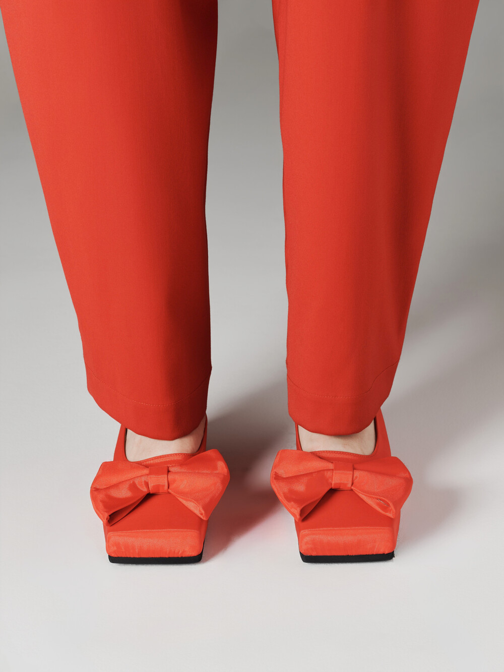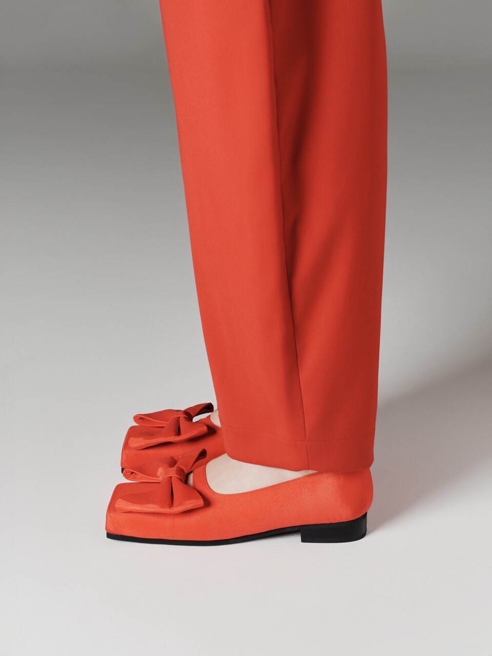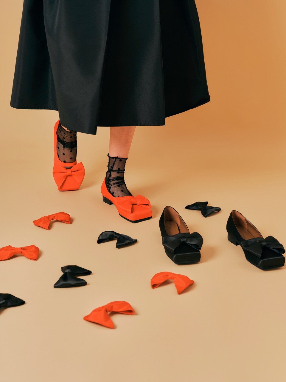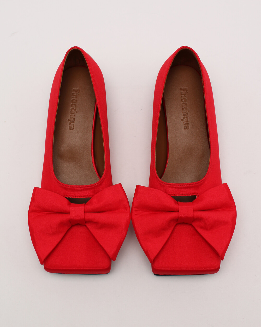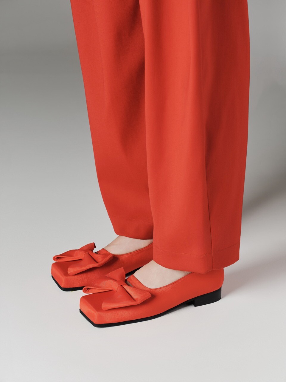 ˙ 피노아친퀘의 아이코닉한 큰 리본과 조형적인 스퀘어 토 쉐입이 포인트인 플랫슈즈