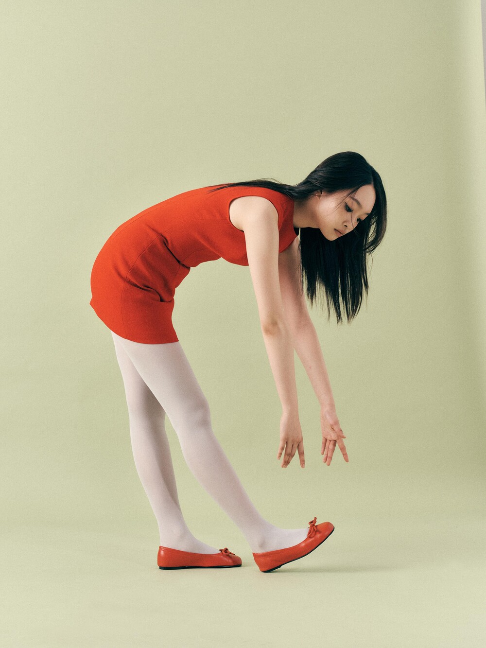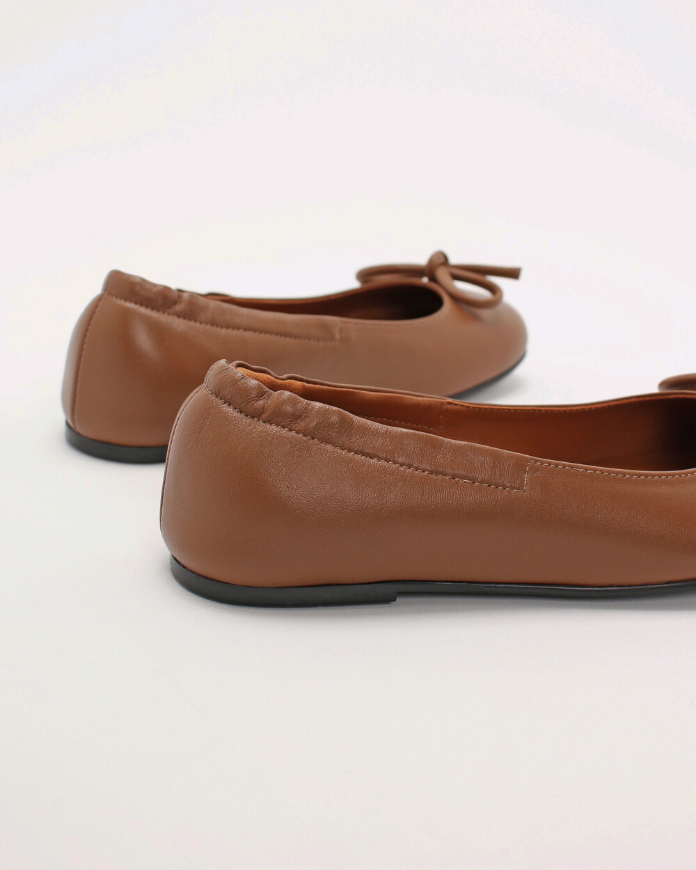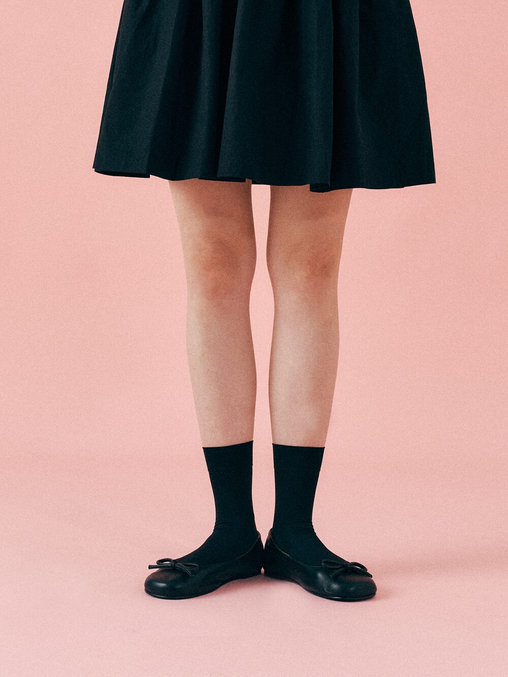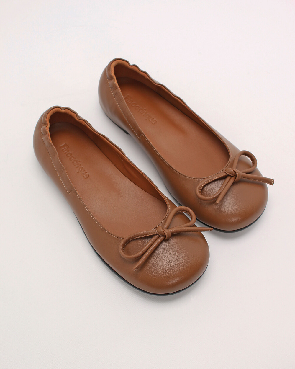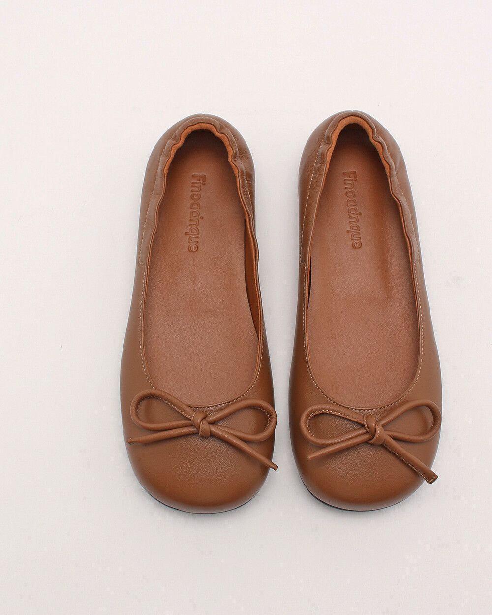 ˙ 귀여운 리본과 완만하고 유니크한 스퀘어 토가 포인트인 플랫슈즈