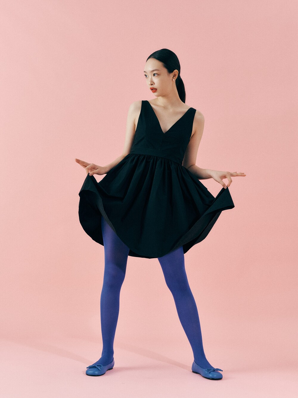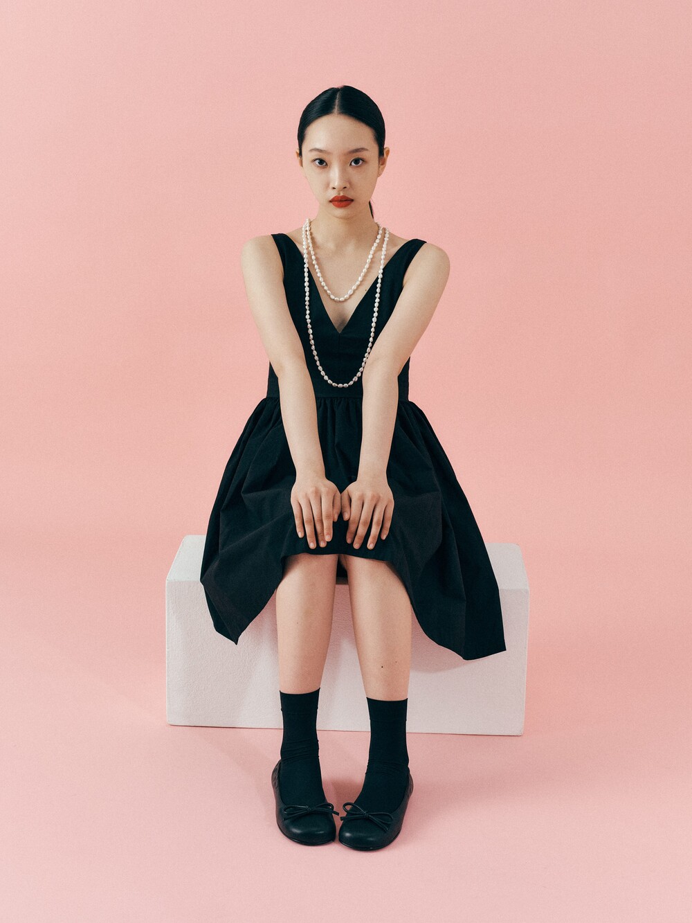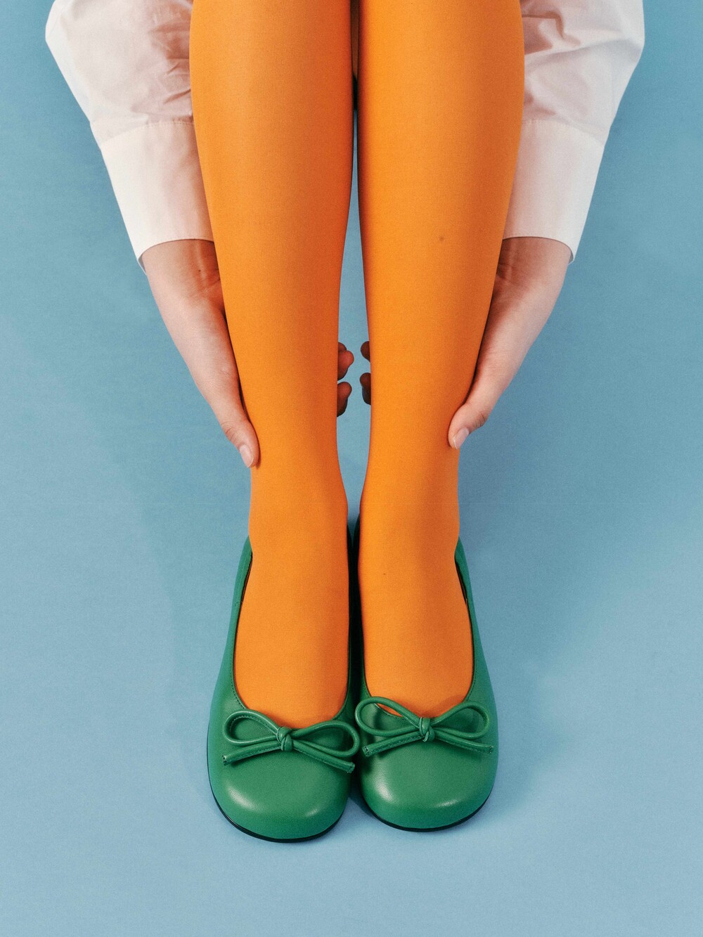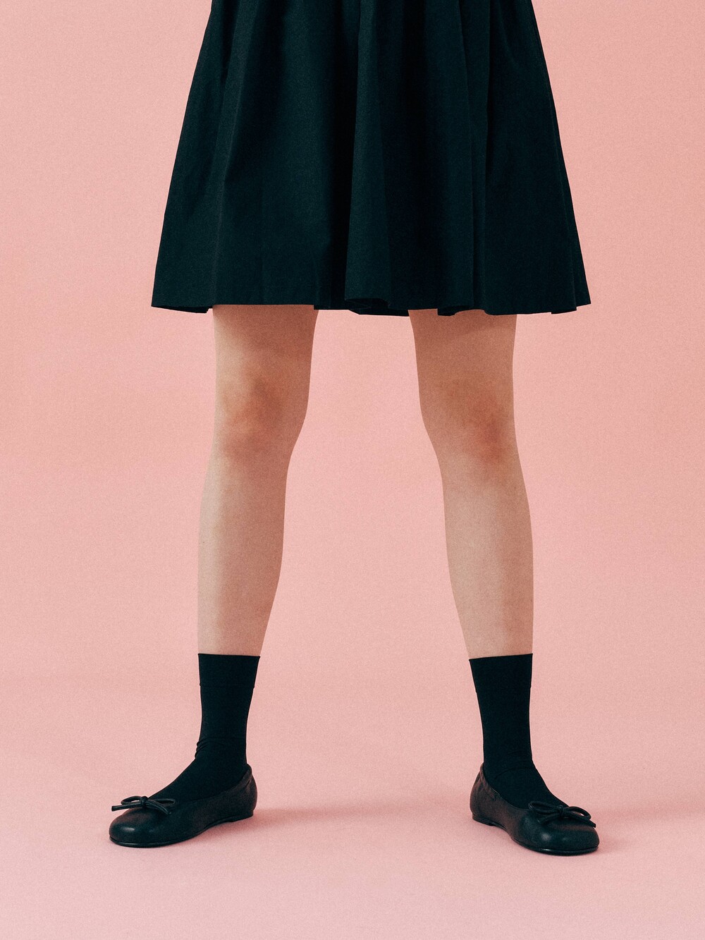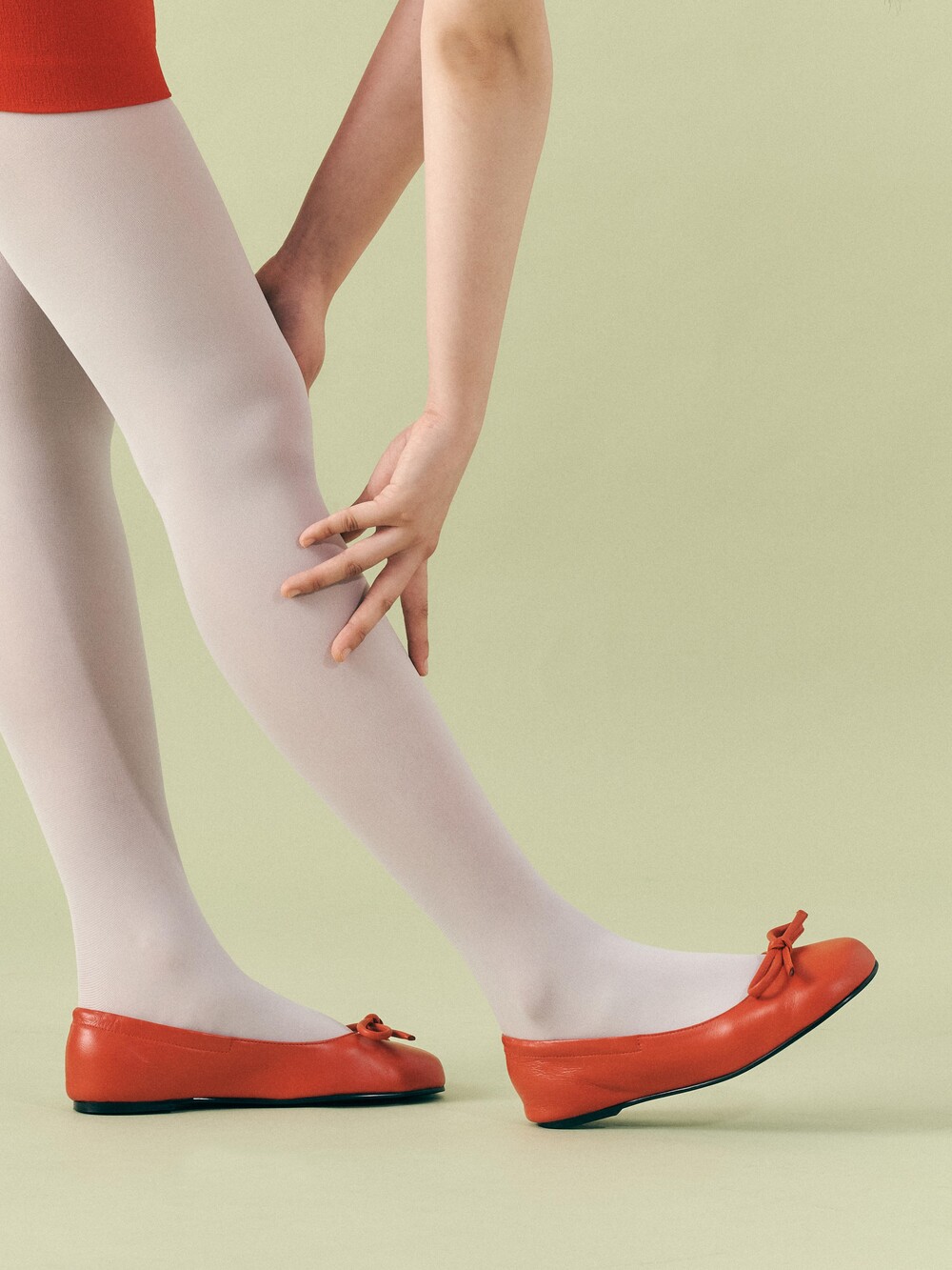 ˙ 귀여운 리본과 완만하고 유니크한 스퀘어 토가 포인트인 플랫슈즈