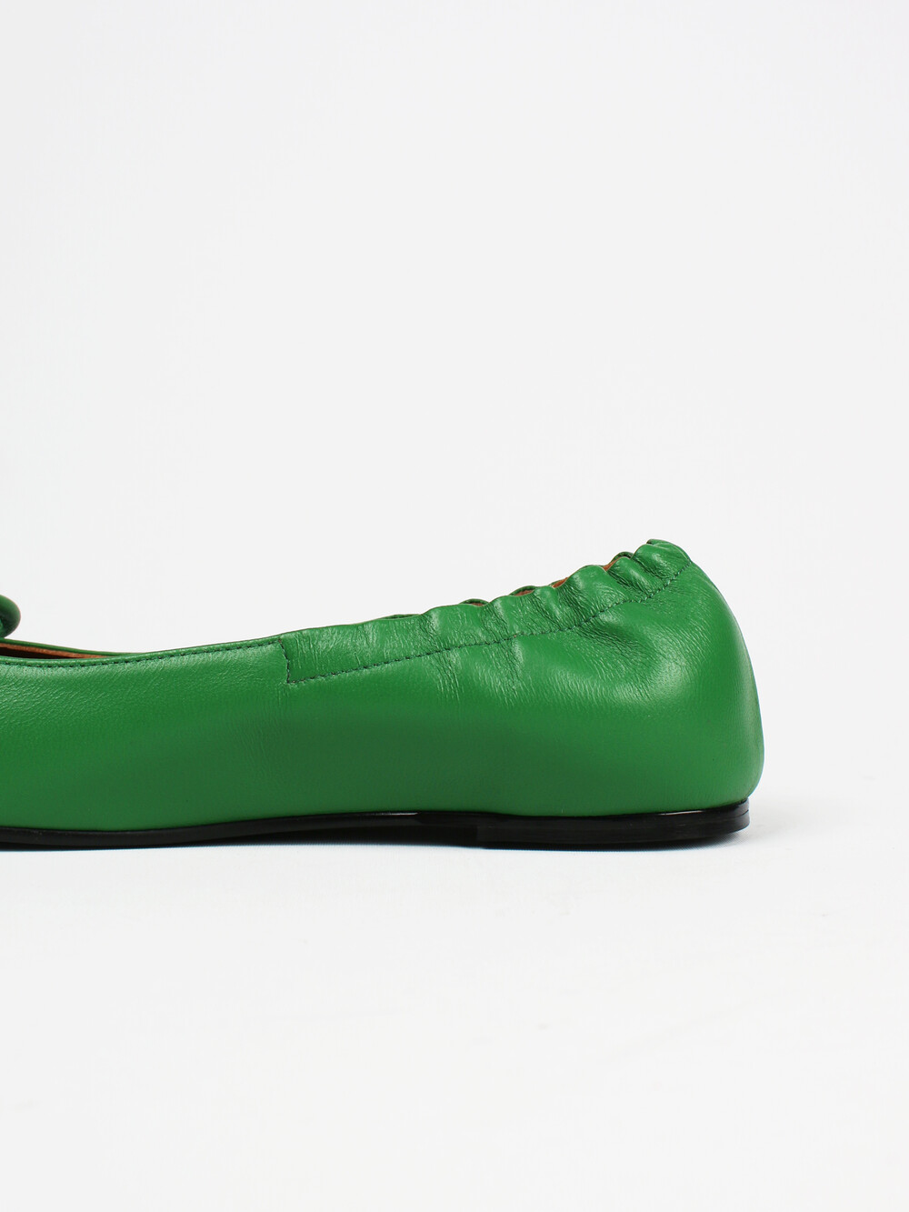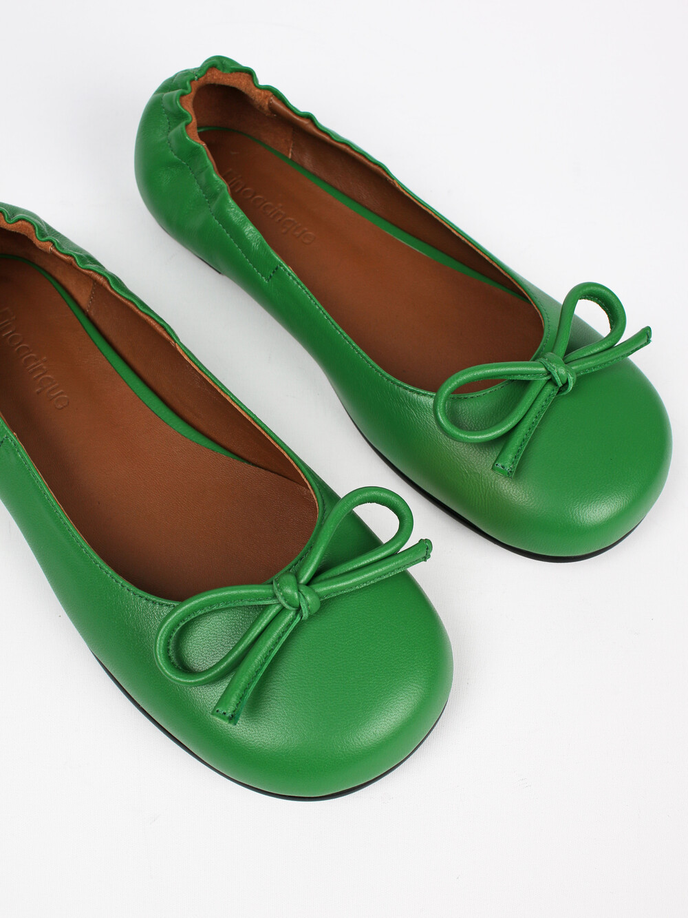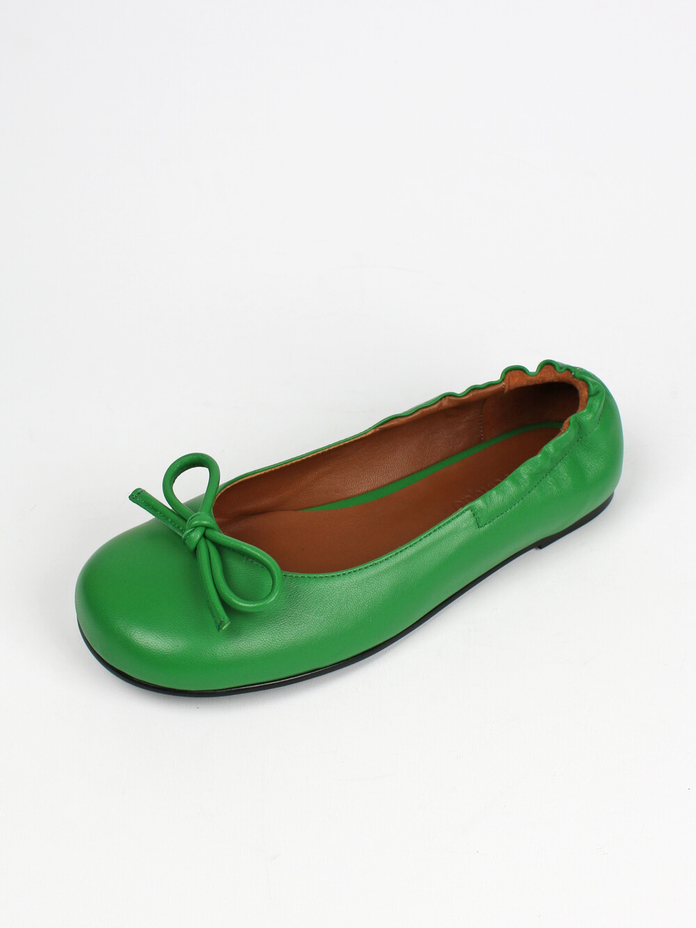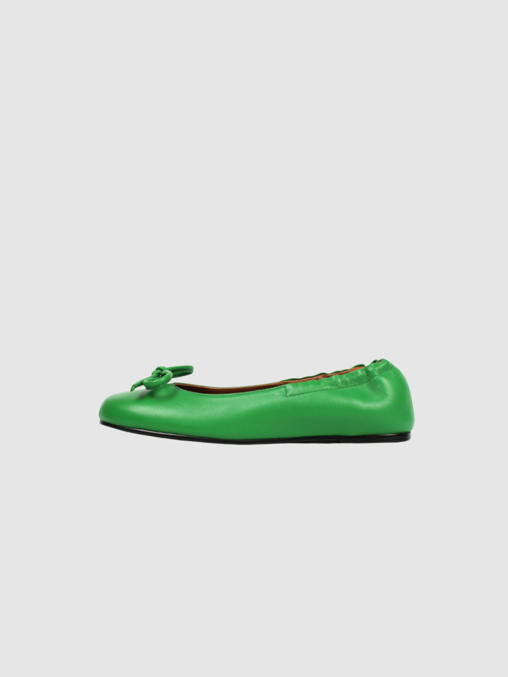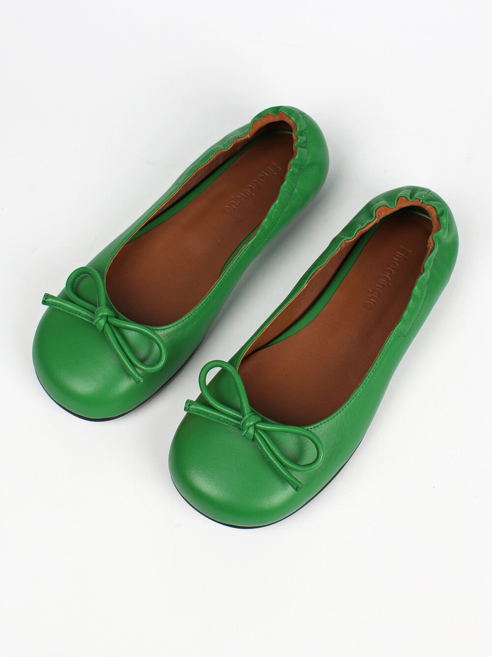 ˙ 귀여운 리본과 완만하고 유니크한 스퀘어 토가 포인트인 플랫슈즈