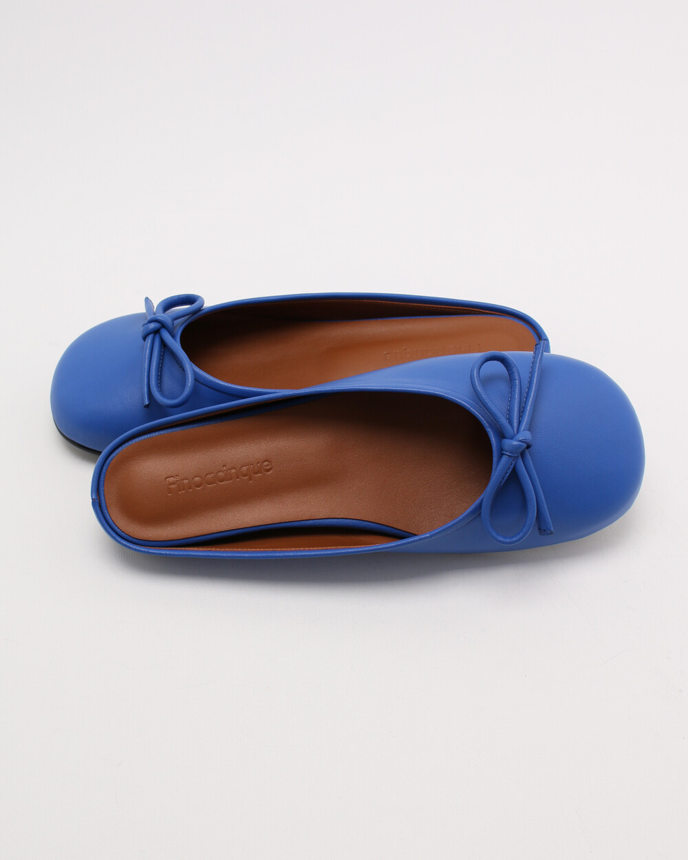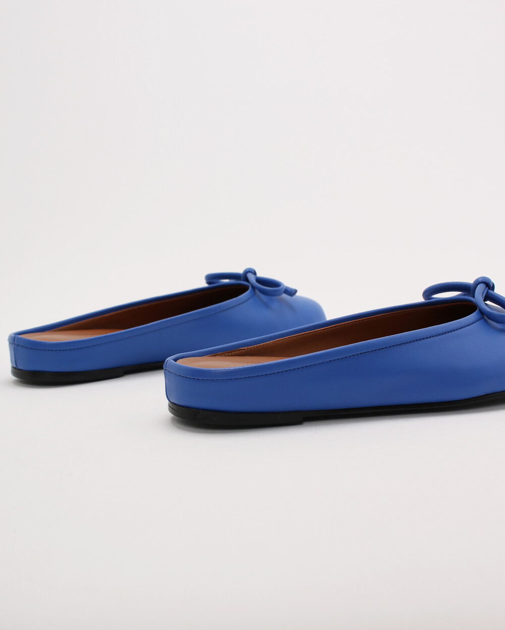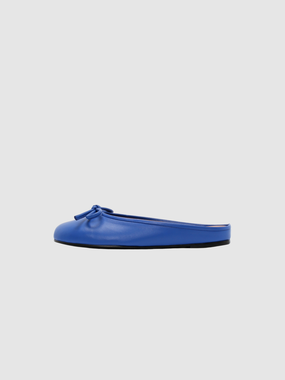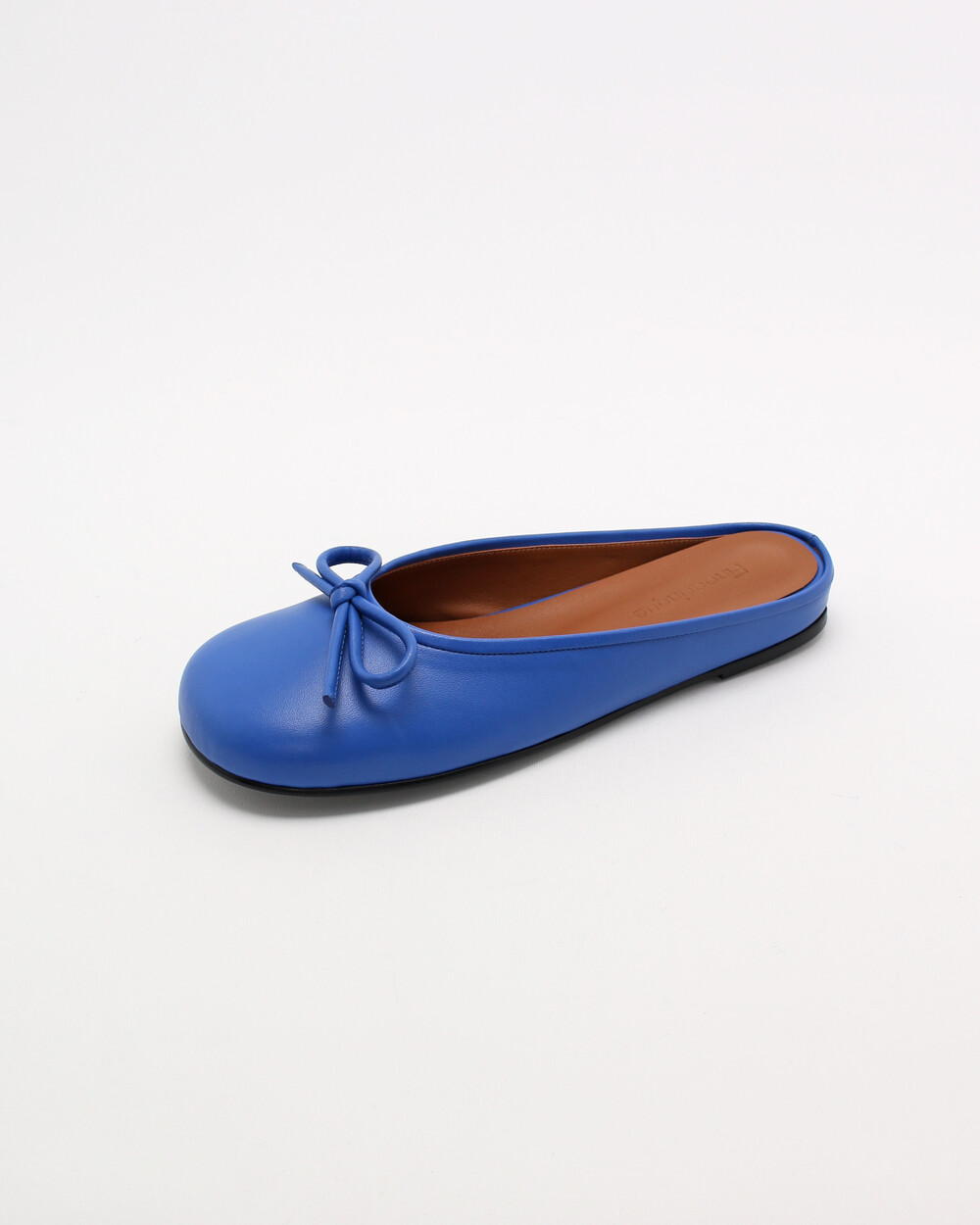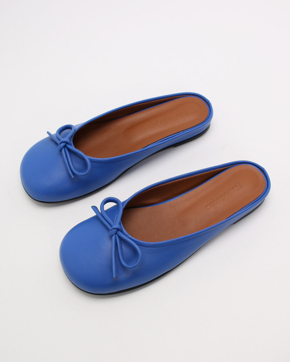˙ 귀여운 리본과 완만하고 유니크한 스퀘어 토가 포인트인 플랫 뮬