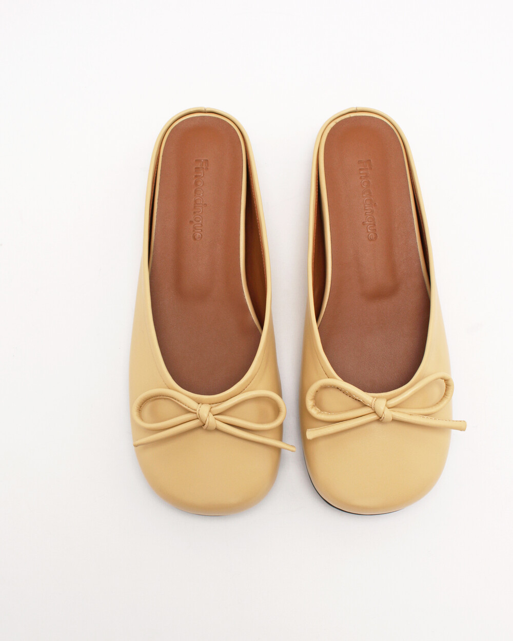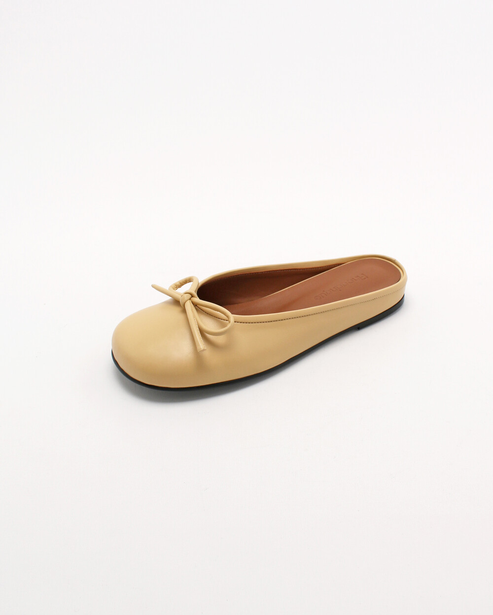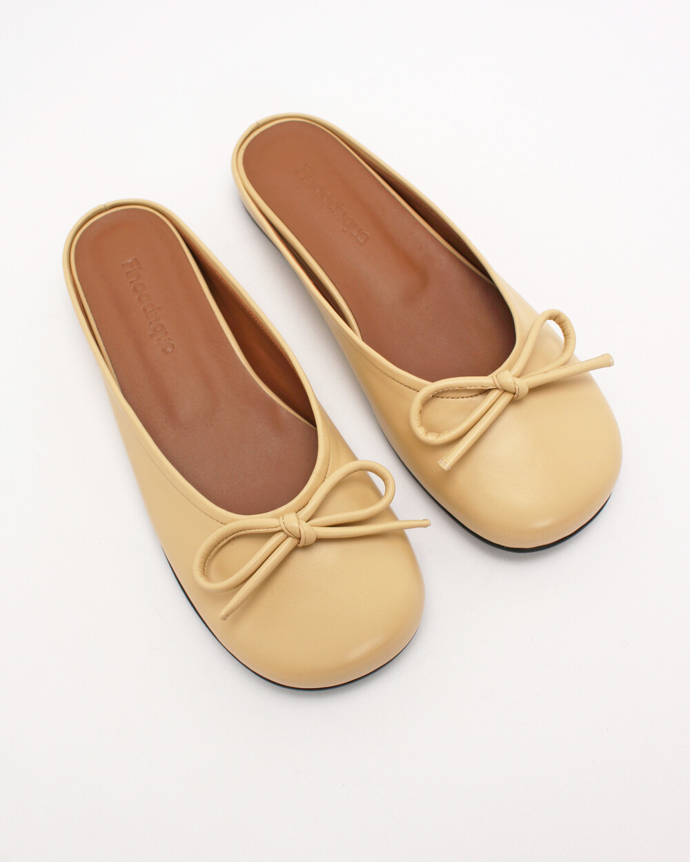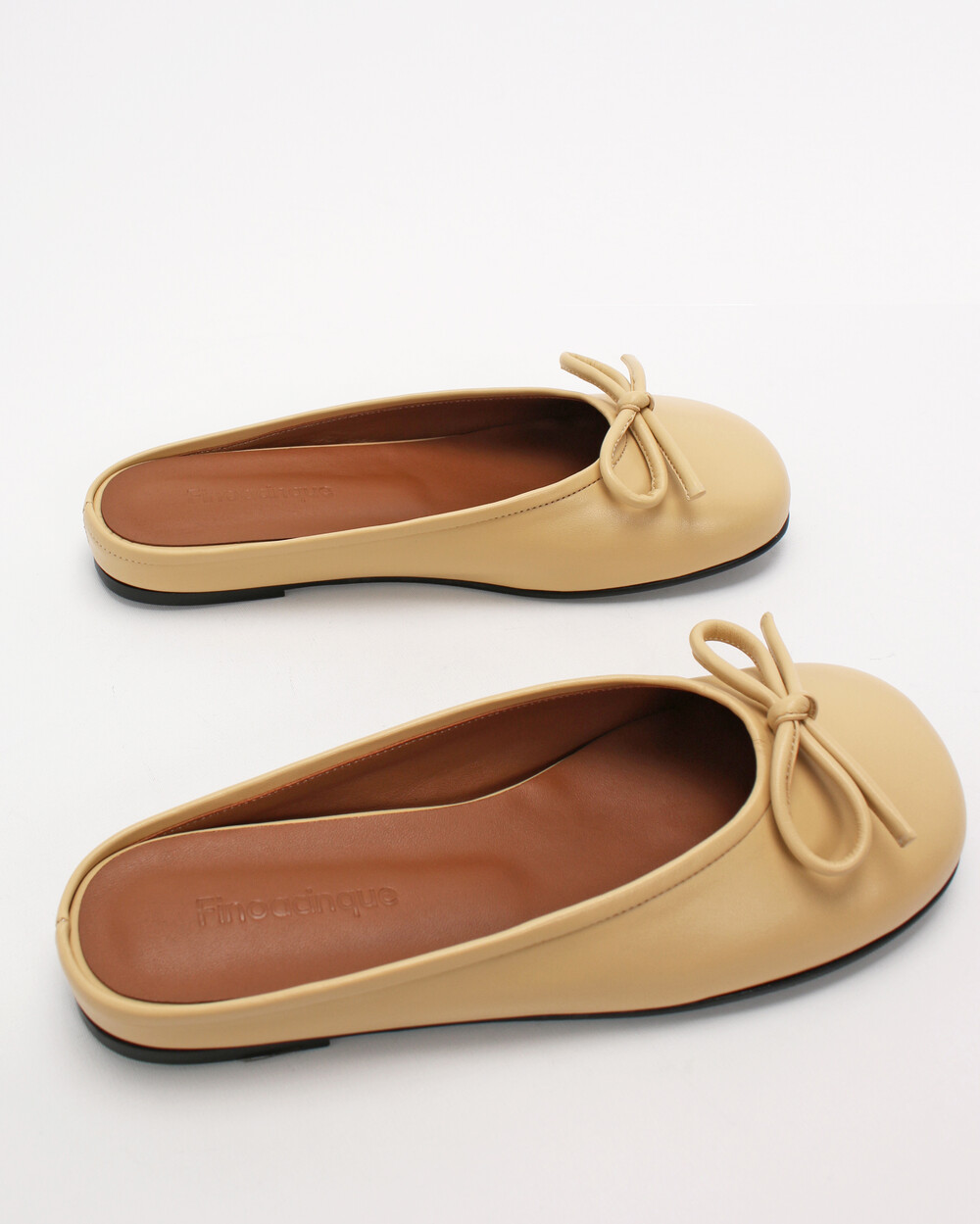 ˙ 귀여운 리본과 완만하고 유니크한 스퀘어 토가 포인트인 플랫 뮬