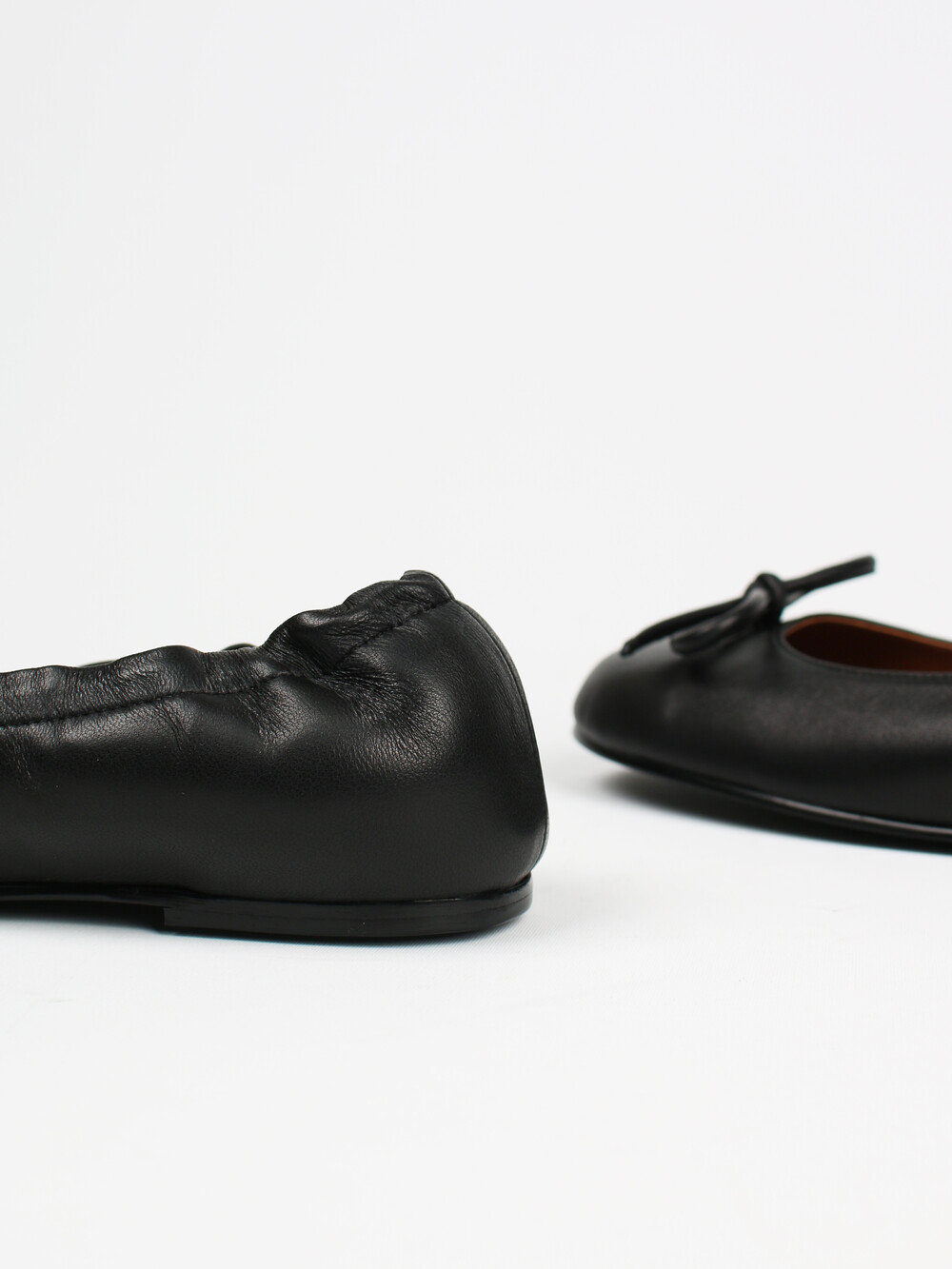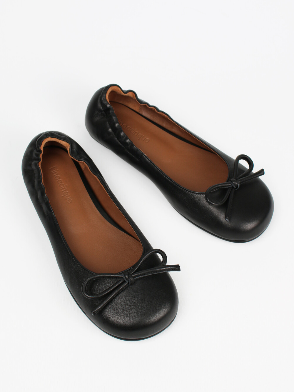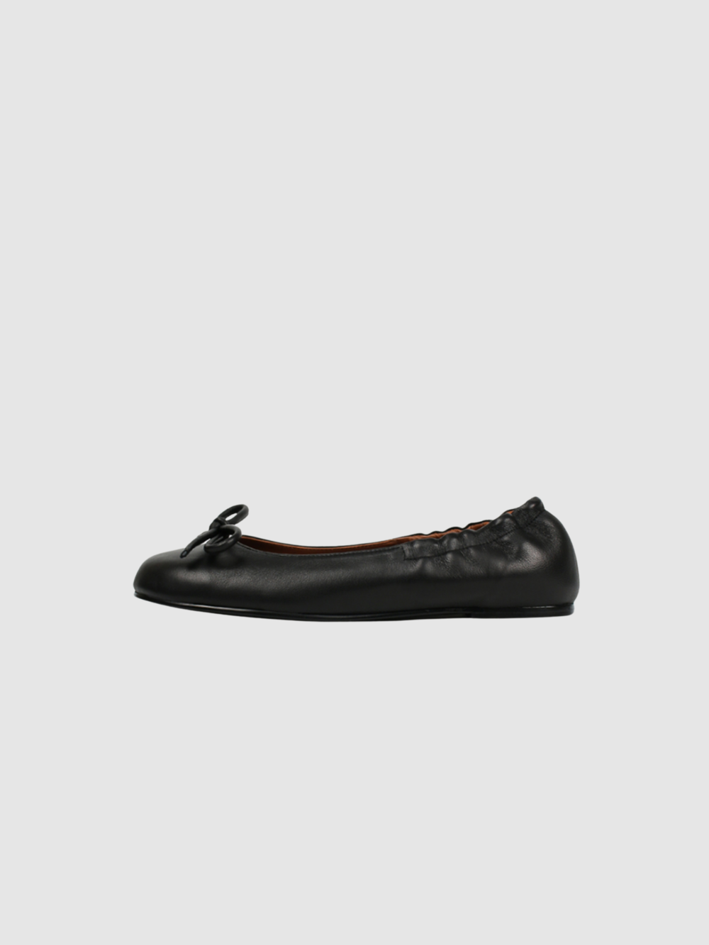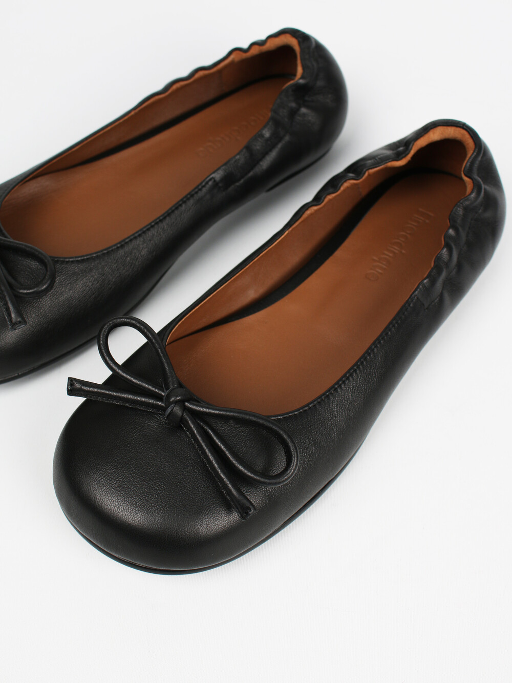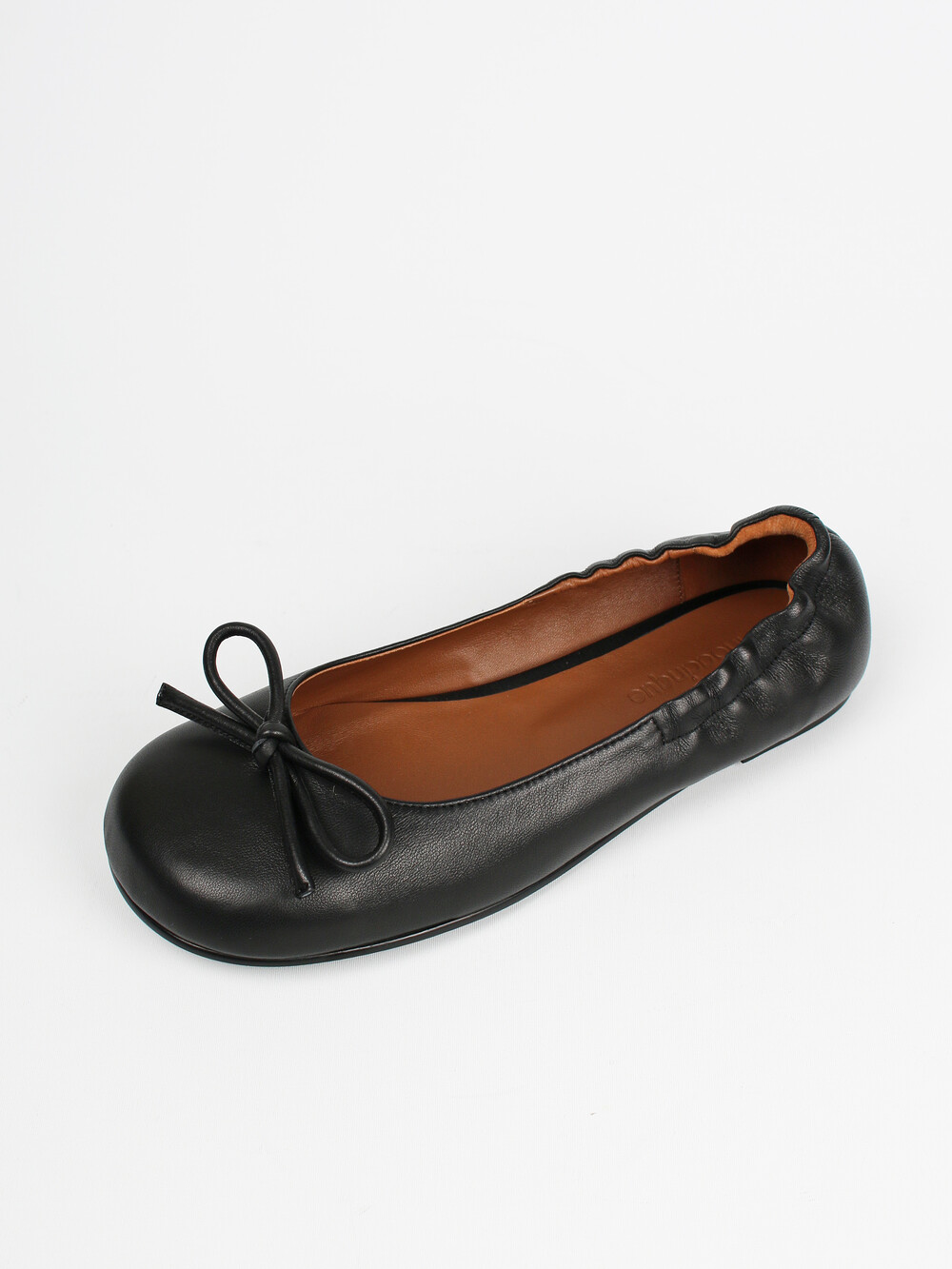 ˙ 귀여운 리본과 완만하고 유니크한 스퀘어 토가 포인트인 플랫슈즈
