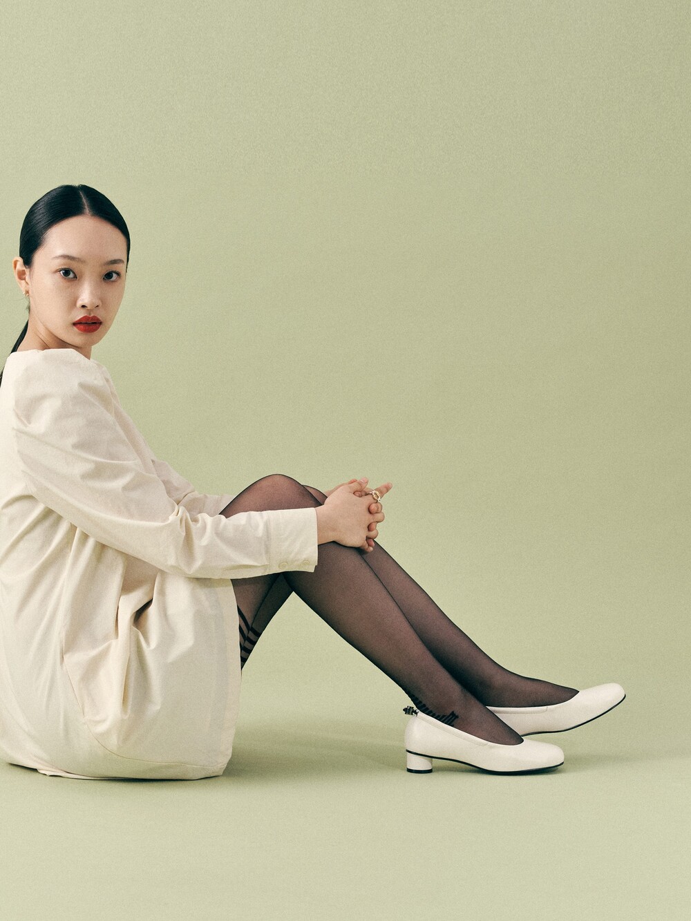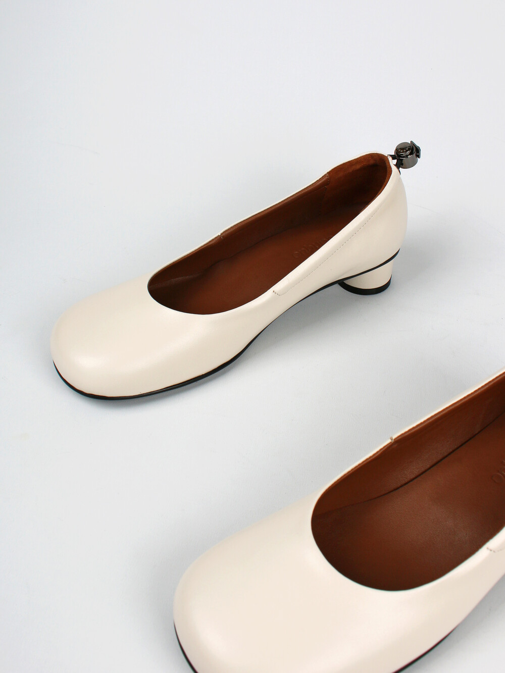˙ 시그니처 스토퍼 장식으로 사이즈 조절이 가능한 로우 펌프스