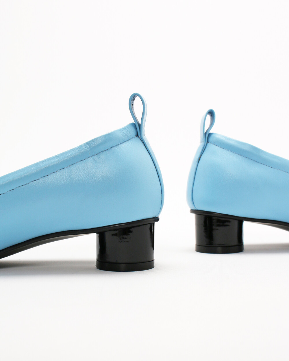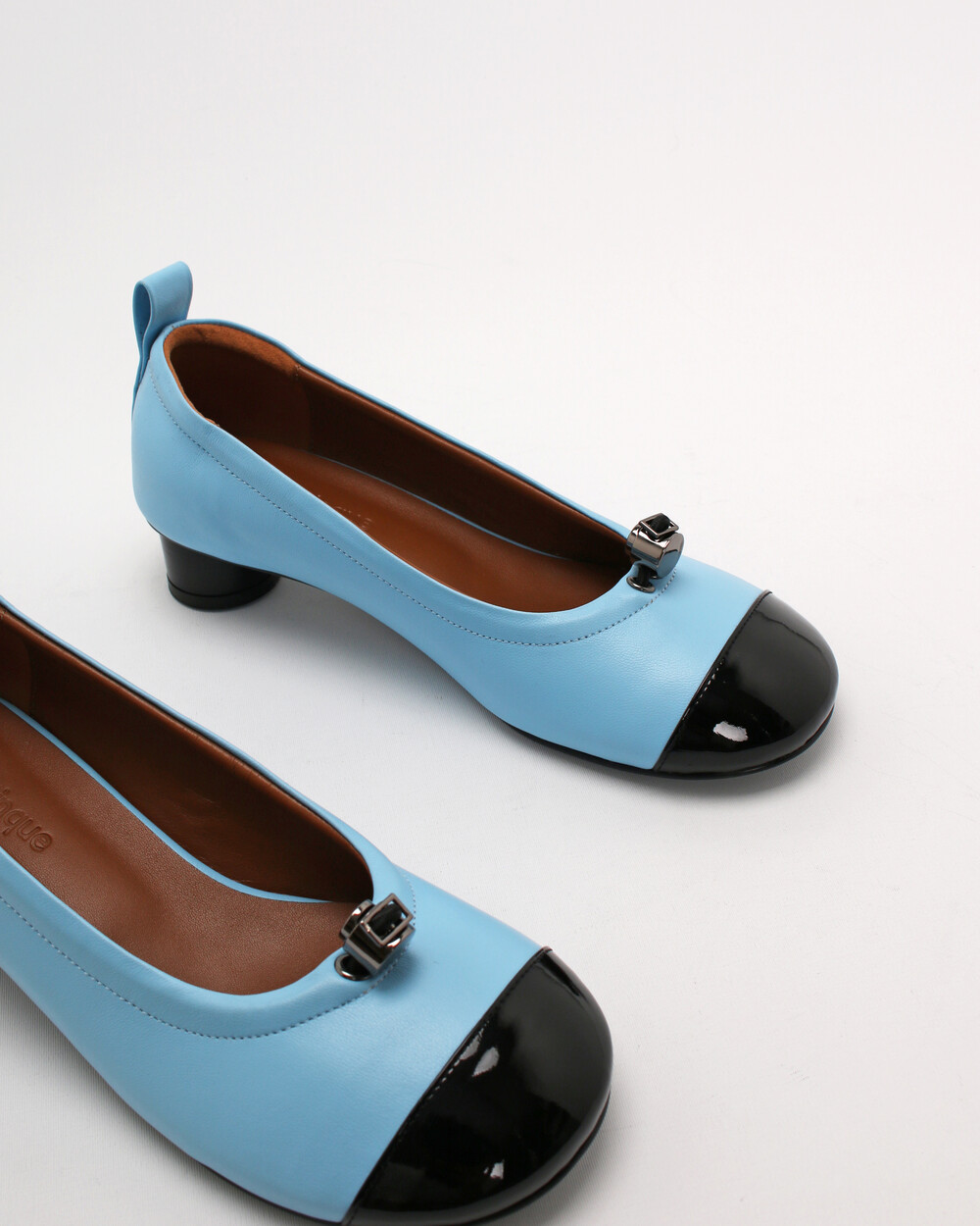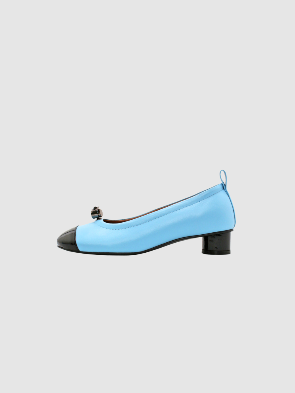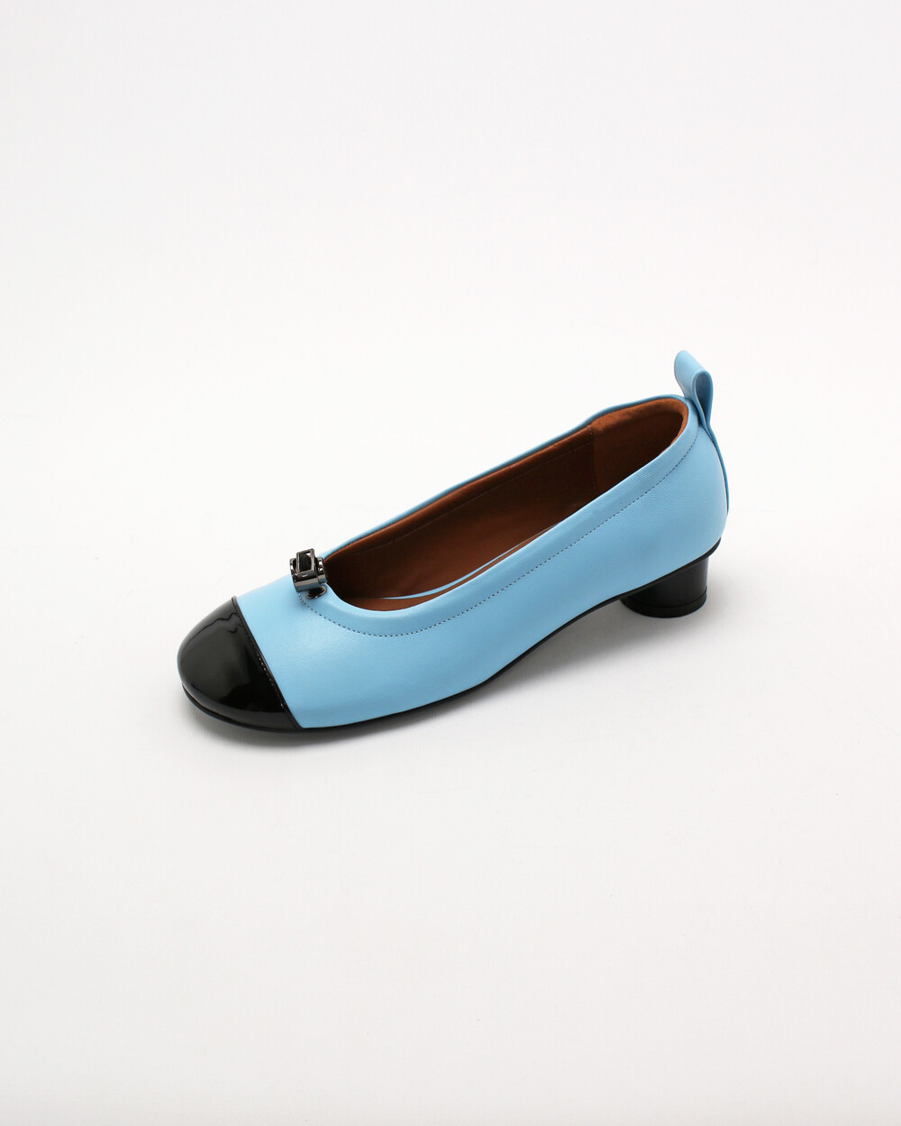 ˙ 시그니처 스토퍼 장식으로 사이즈 조절이 가능한 로우 펌프스
