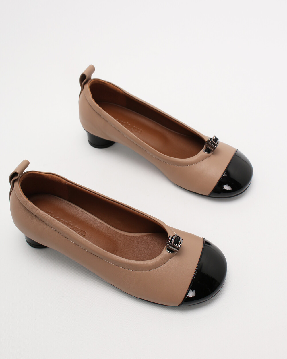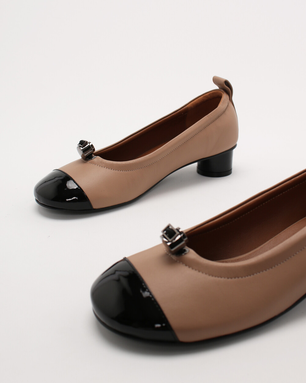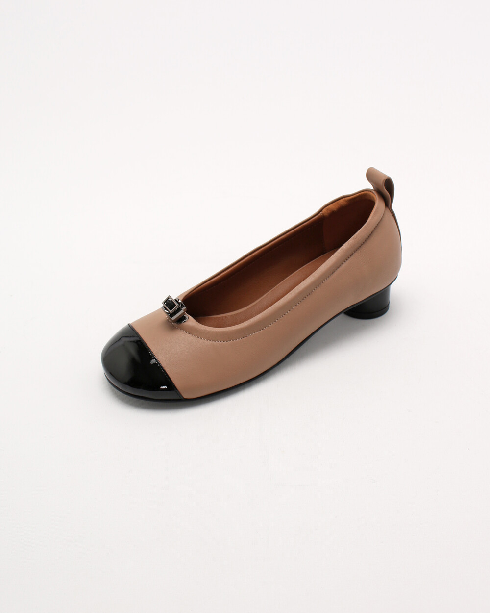 ˙ 시그니처 스토퍼 장식으로 사이즈 조절이 가능한 로우 펌프스
