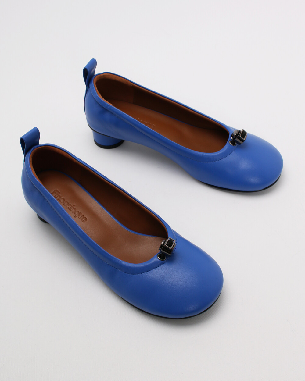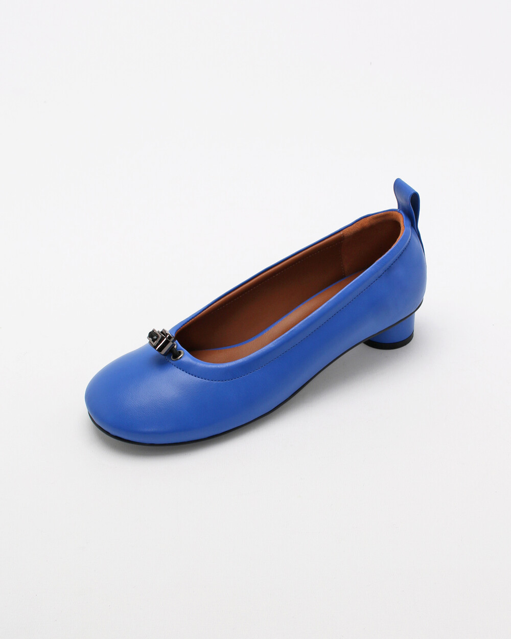 ˙ 시그니처 스토퍼 장식으로 사이즈 조절이 가능한 로우 펌프스