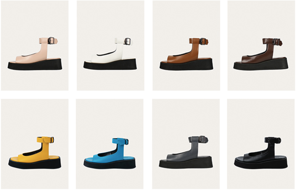 Alegna round ankle strap sandal은 8가지 색상으로 제작됩니다.