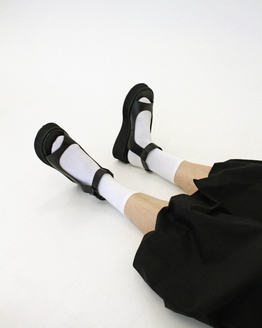 • 사이즈 조절 가능한 버클을 채워서 신는 방식의 앵클 스트랩
