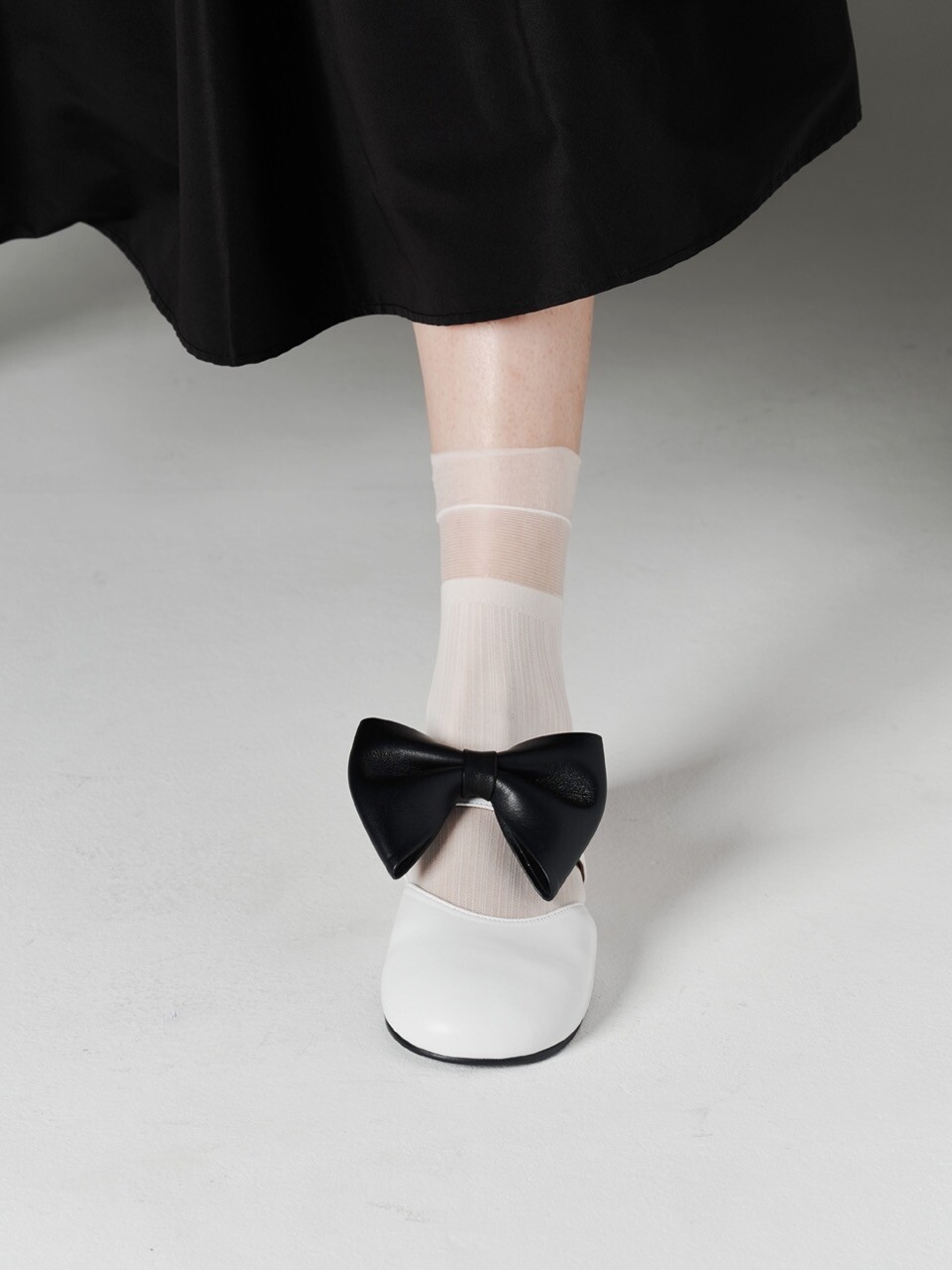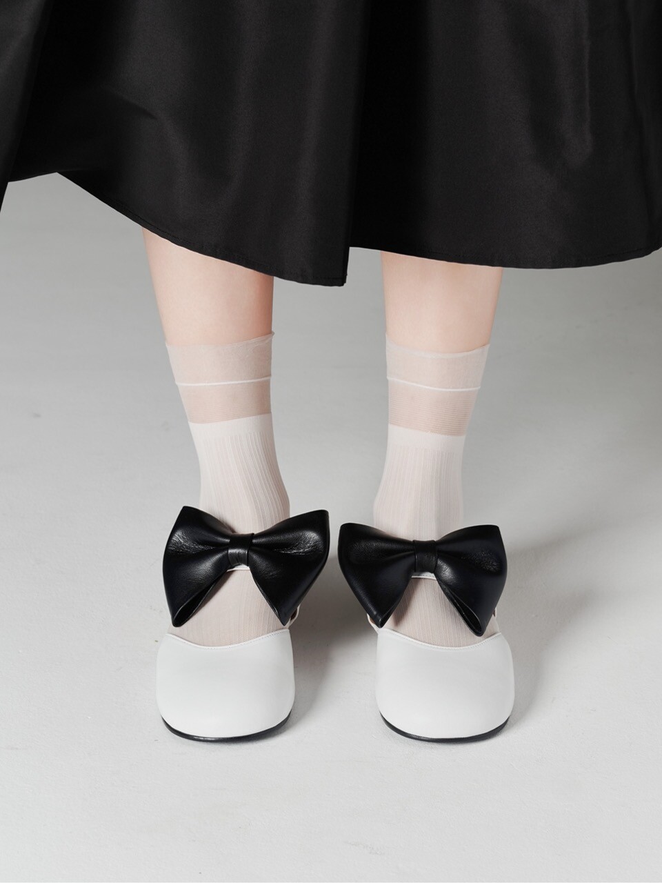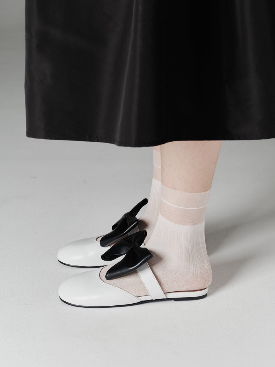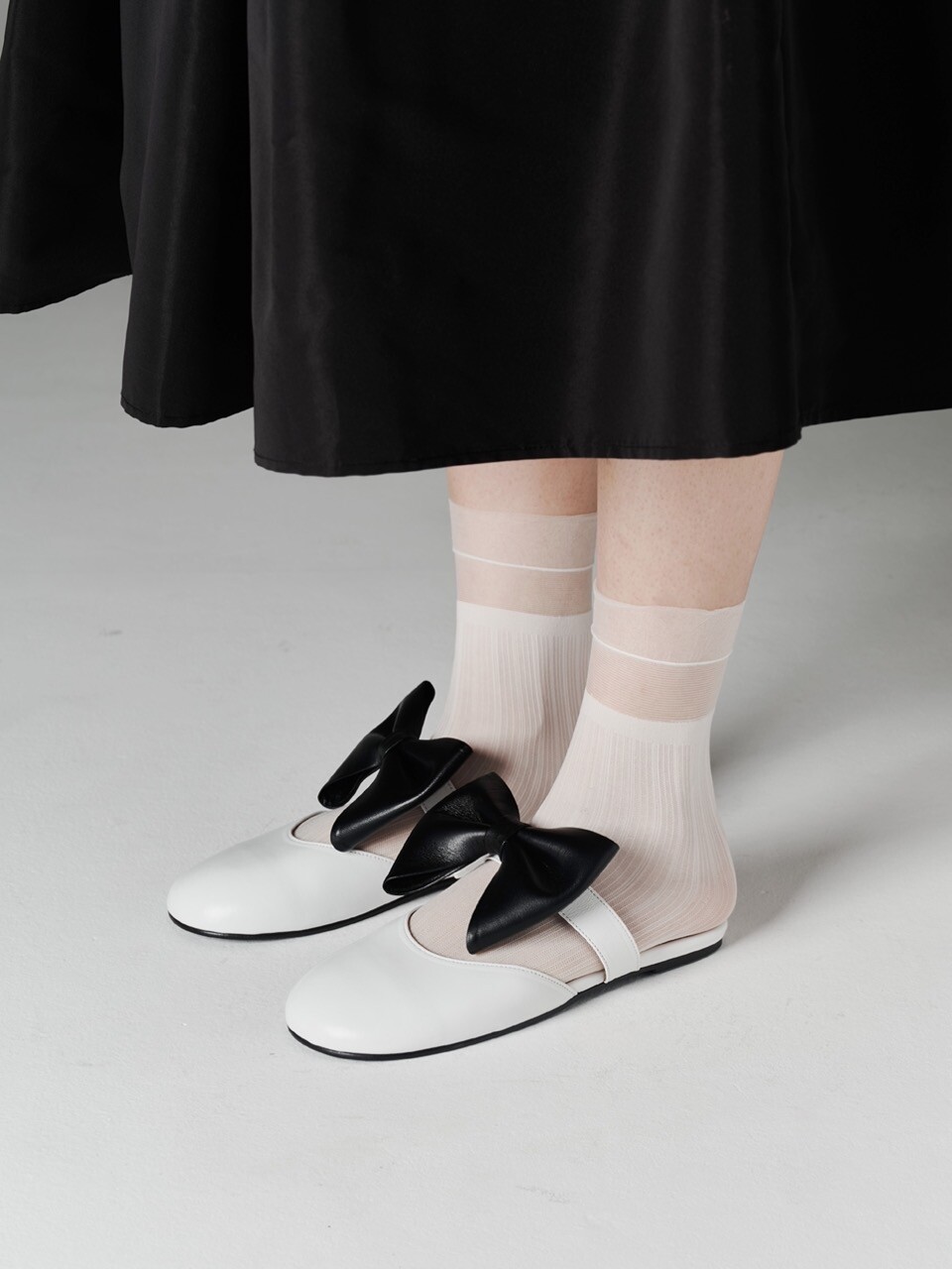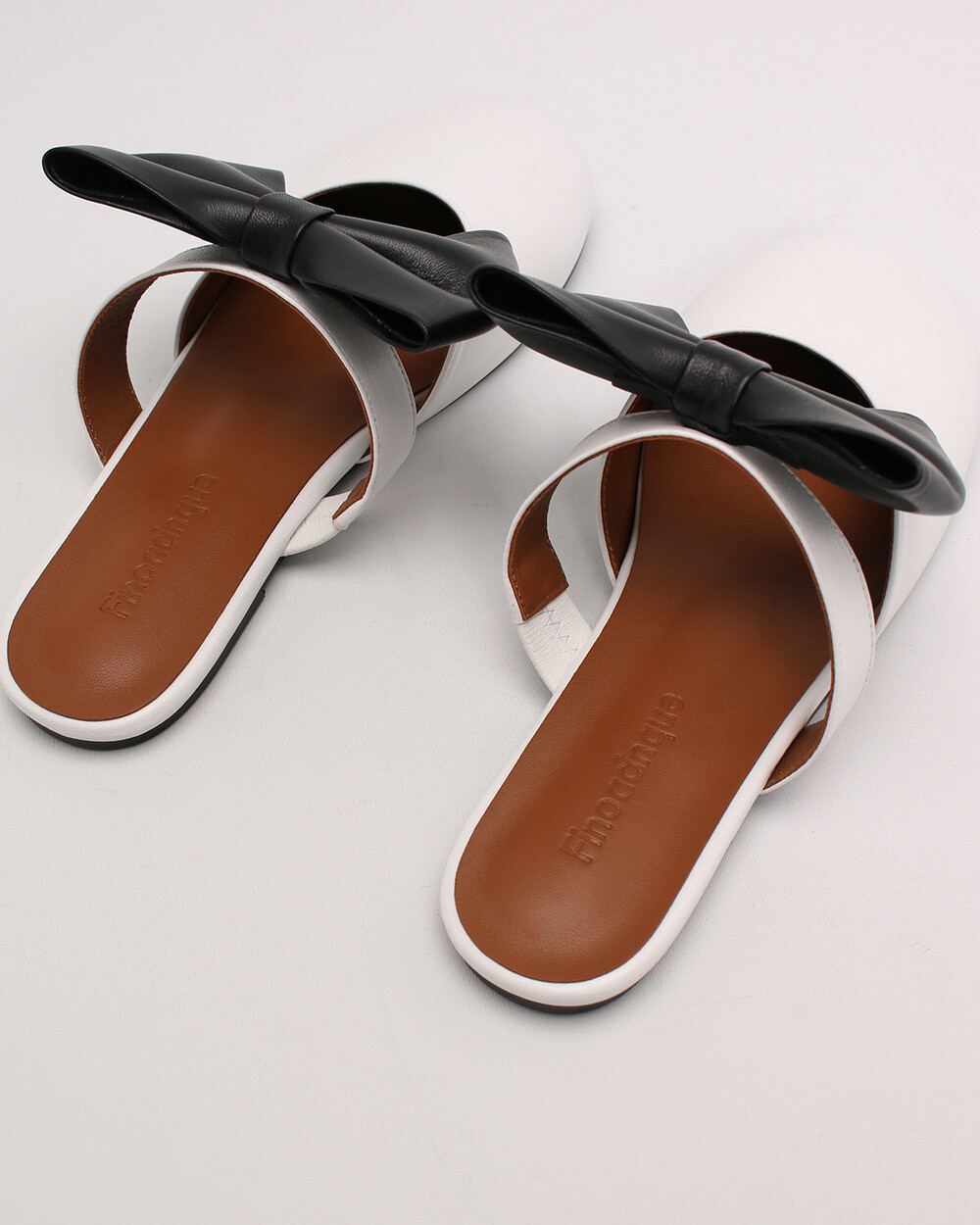 Soo bow flat mules_white combi