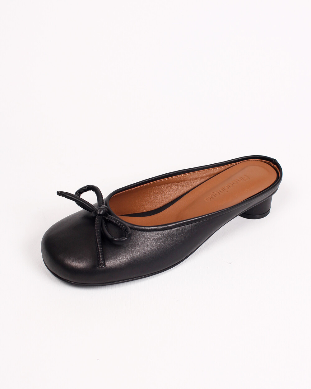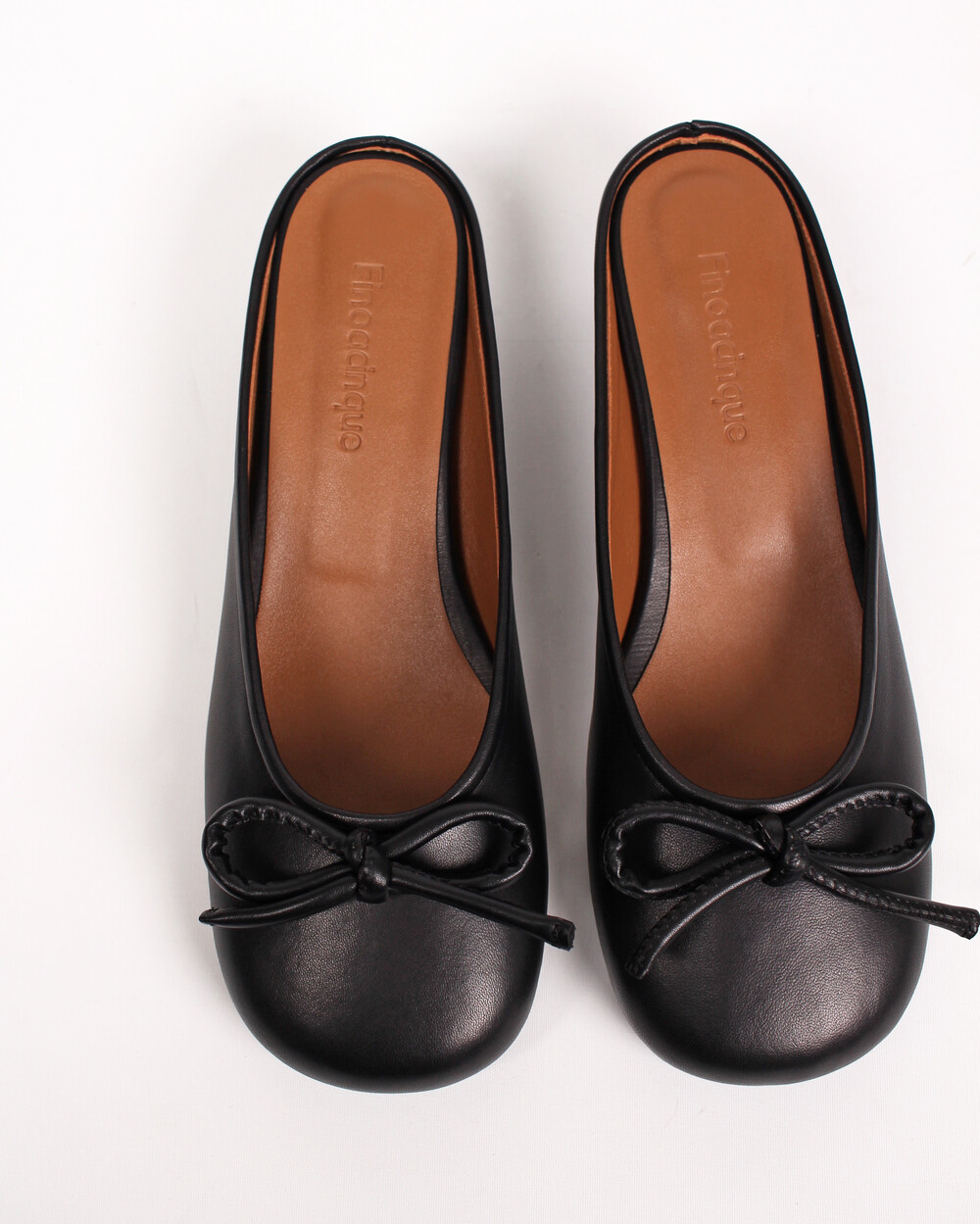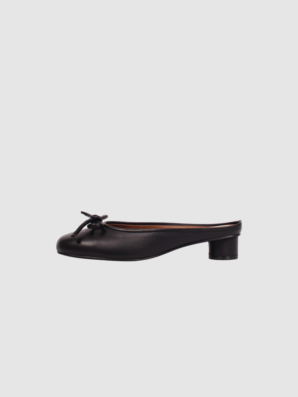 ˙ 귀여운 리본과 심플한 스퀘어 토가 포인트인 로우 힐 뮬