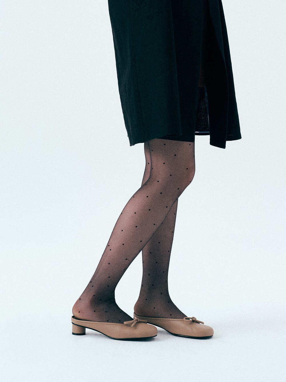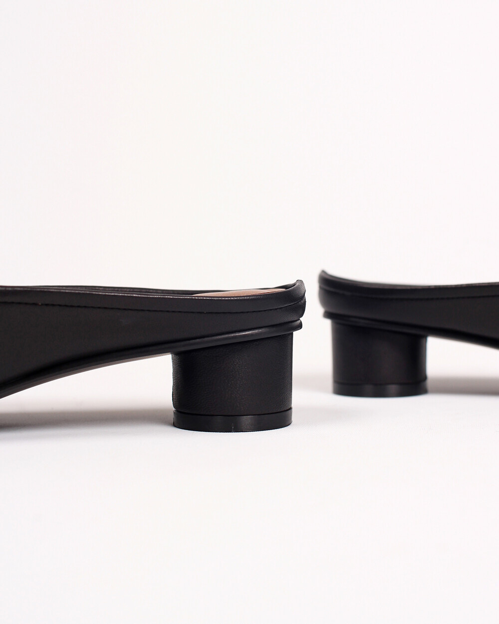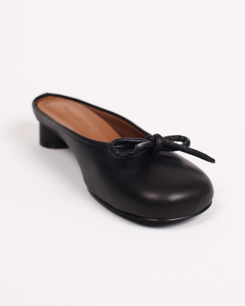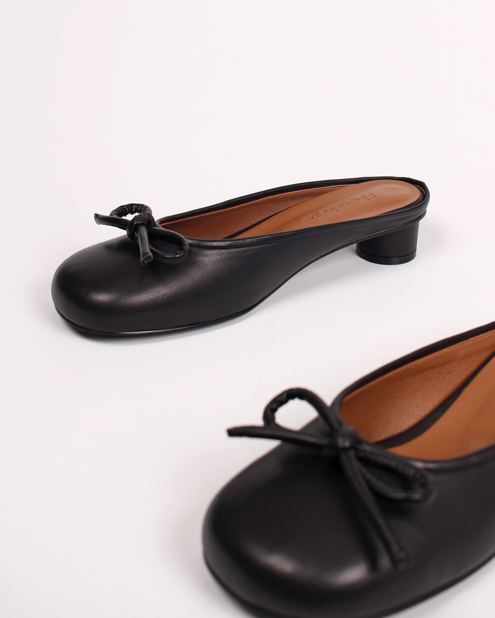 ˙ 귀여운 리본과 심플한 스퀘어 토가 포인트인 로우 힐 뮬