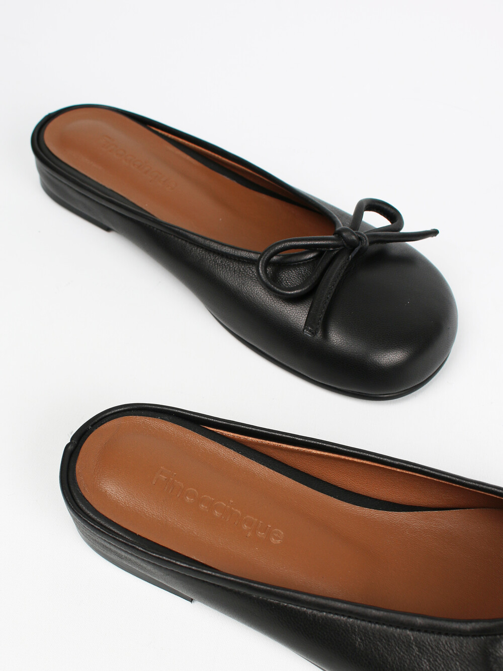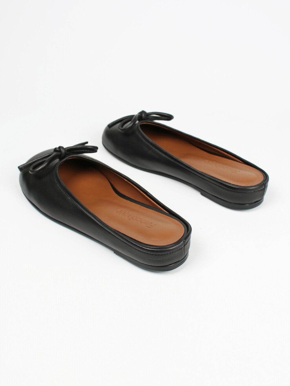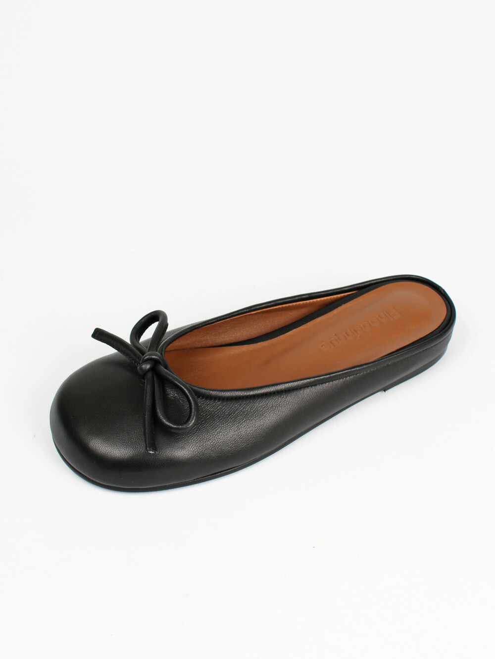 ˙ 귀여운 리본과 완만하고 유니크한 스퀘어 토가 포인트인 플랫 뮬