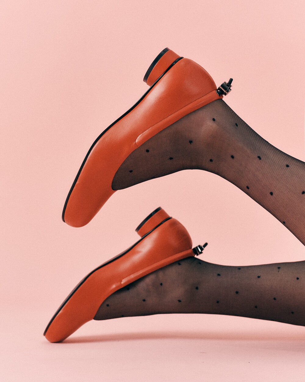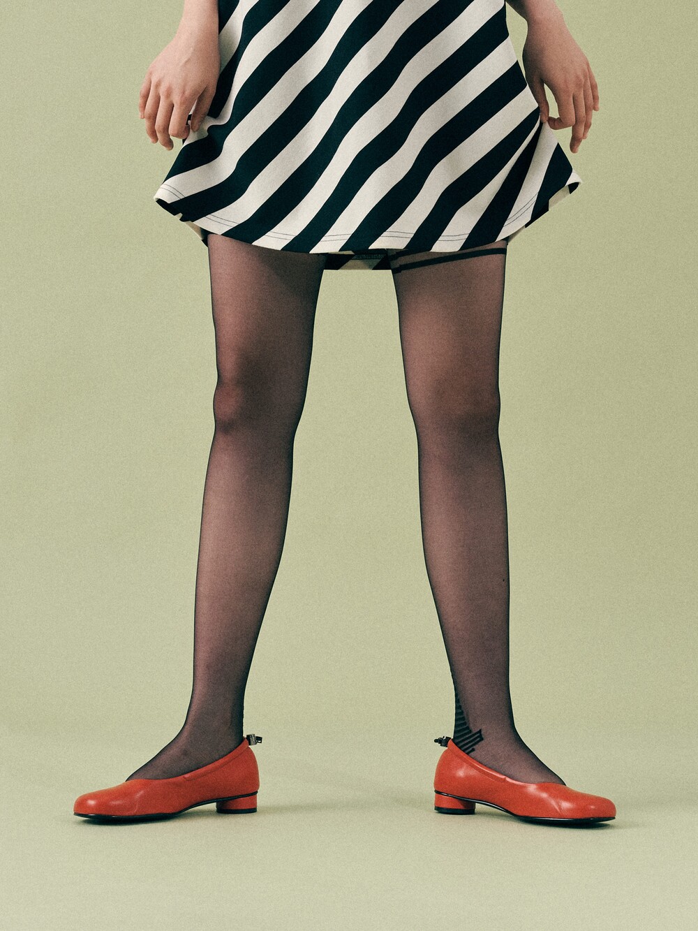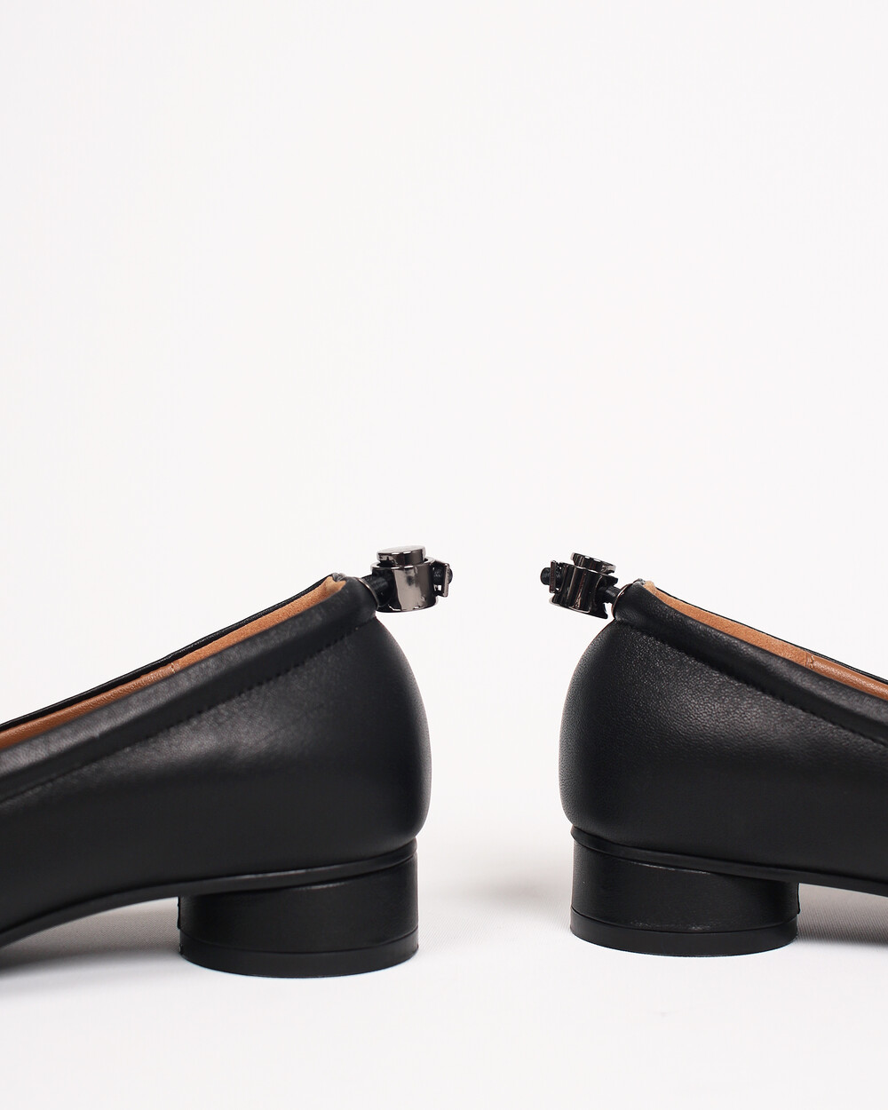 ˙ 시그니처 스토퍼 장식으로 사이즈 조절이 가능한 플랫슈즈